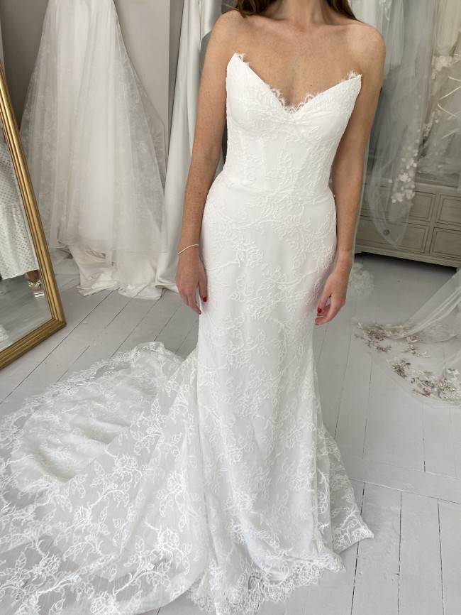 The length has not been altered at all and is the set atelier length of all of her dresses which means it can be altered to fit you perfectly!