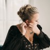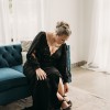 I knew I wanted a black dress before we started shopping and believe it or not, this was the first dress I tried on. I fell in love with it and knew it was the one right away. I would love for someone else to feel the magic! The sleeves are peek-a-boo so they are fitted lace underneath the flowy sleeves. (One of my favorite parts) You can kind of see it in the photo where I'm sitting on the couch. If you look at that same picture, you can see little sequins on the train that make the dress sparkle. It was comfortable to wear all day. I was able to pull it up over my hips to use the bathroom. Feel free to ask any additional questions!