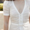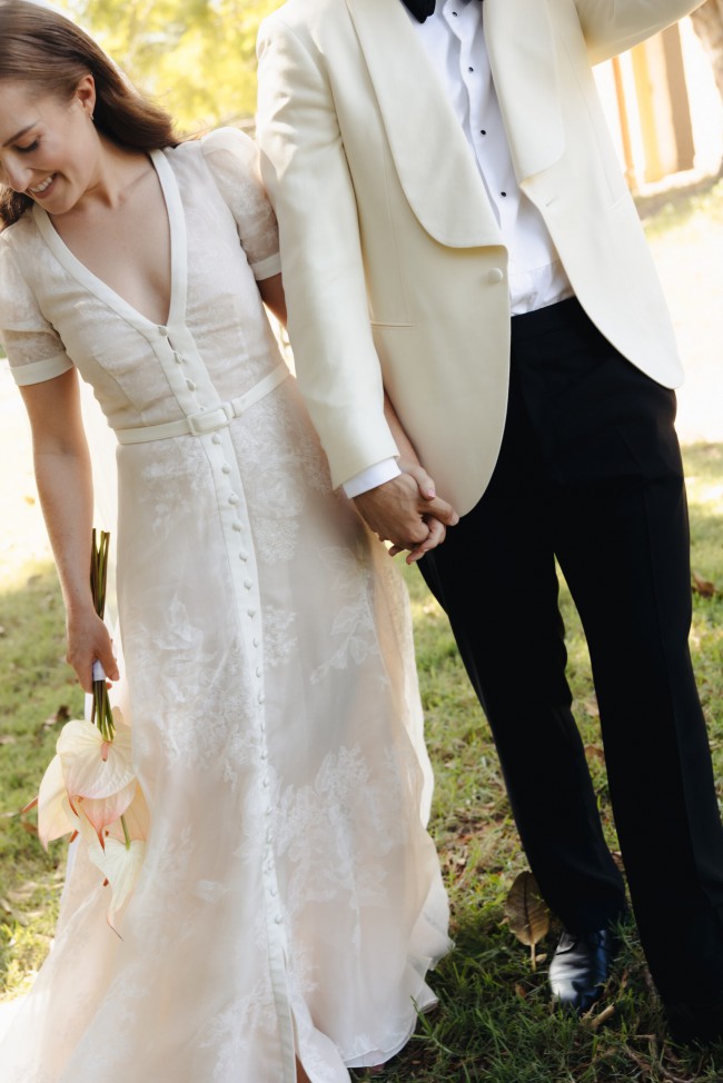 - They button up at the back and there are two buttons that allow for a smaller or larger fit around the arm band to ensure the dress will fit all sizes