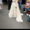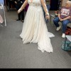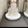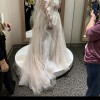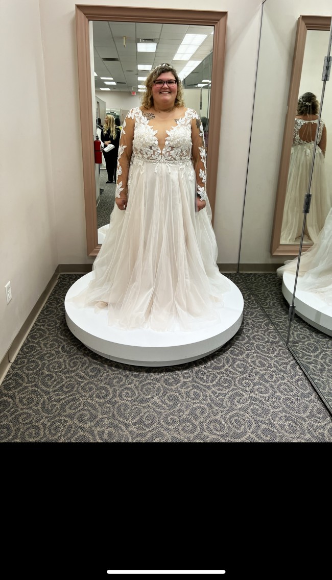 Intricate floral lace appliques, embellished with nearly 4,000 beads and sequins, adorns the illusion plunge bodice and trims keyhole back of this romantic wedding dress. The soft, sweeping skirt is finished with a fashion-forward double slit that lends movement to every step. BRAND NEW. In dress bag. Still has tags on it. Size 20, ivory in color. Has only been worn to be tried on, has not been worn for anything else. Does come with head band piece that I am wearing in pictures. DOES NOT come with veil.