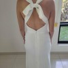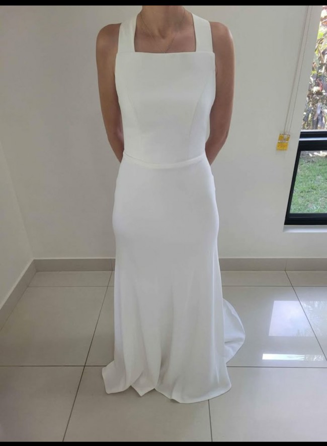 Never worn. I had the dress made and then changed my mind and purchased the dress I first tried on when I started dress shopping. This dress is based on a Alex Perry bow dress which had sold out. Amazing quality in material. It would fit a size 7. I am 175cm and wore 4cm heels. It cost $1200 to make