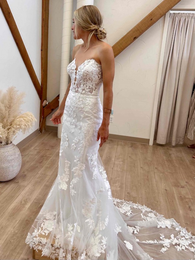 Stella York style 7736, purchased from Bespoke Bride in July 2023 and wore for my summer 2024 wedding. Altered the length to make it shorter: I am 5’2” and wore 2.5” heels. Professionally dry cleaned. Located in Silverthorne, CO and I come to Denver often if you’d like to try on in person!