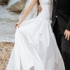 Lazaro bridal gown - Ivory BMW silk satin ball gown, strapless curved neckline, French corset bodice with drop waist, gathered skirt with side pockets, chapel train. Tulle underskirt.