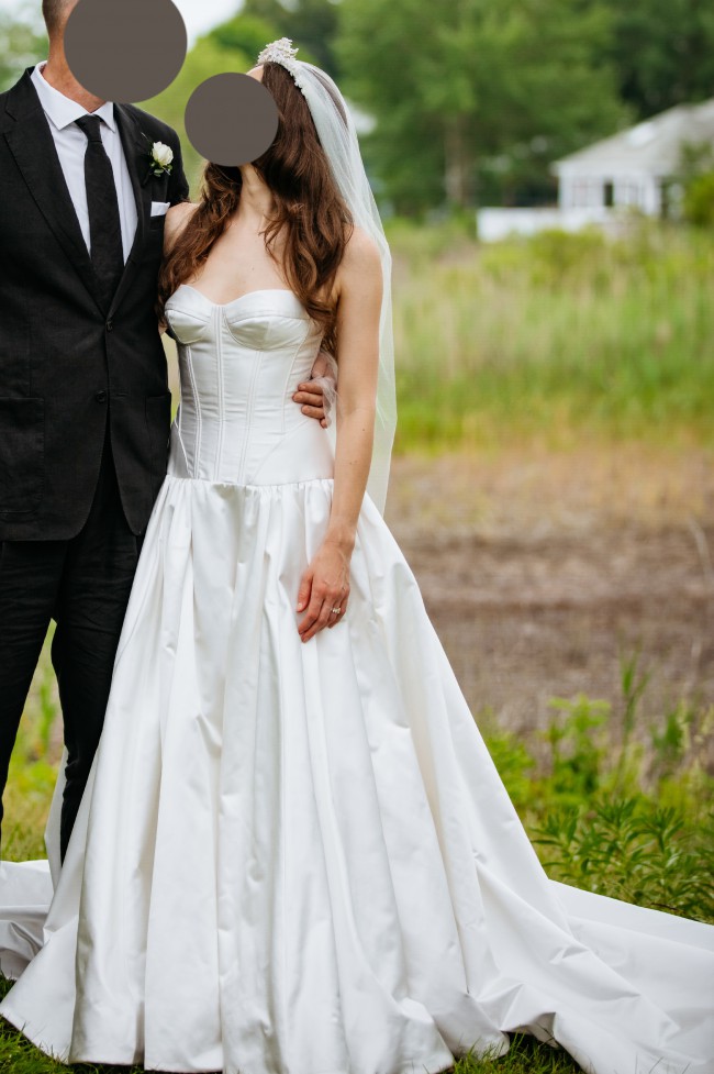 I love this stunning dress so much! It was such a dream to wear and I'm excited to pass it on to another beautiful bride. The drop waist, unique structure and volume is so elegant and flattering. I wore for the ceremony and party and it was very comfortable and fun to wear. A perfect balance of classic/romantic and sexy/cool.