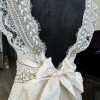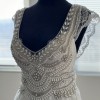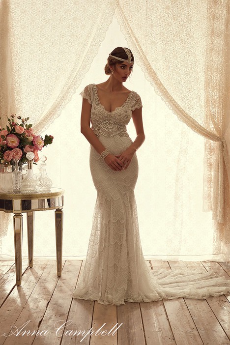 This enchanting Anna Campbell wedding dress is the epitome of elegance and romance. The fit and flare silhouette beautifully accentuates your curves, creating a breathtaking hourglass figure as you walk down the aisle. Made from exquisite ivory lace, this dress features intricate floral patterns that add a touch of vintage charm.