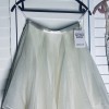 The Jarred skirt offers exquisite, lightweight movement in its many bias-cut tiers of ivory washed silk organza. Skirt's sash and lining are silk satin. Sash offers a bit of contrast in an ever-so-slightly darker "vanilla bean" color.