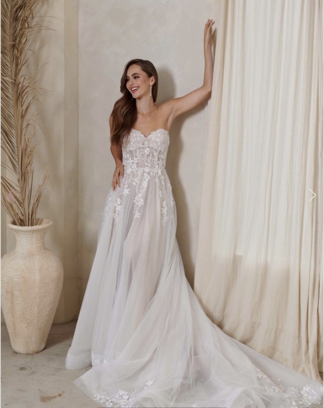 Please be informed that the dress I am wearing in the photos is the sample dress at the bridal shop.
