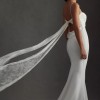 The Savannah Miller Emmy Wedding Gown offers unmatched gracefulness with detachable lace that elegantly floats behind you as you walk down the aisle. The keyhole front cut-out and draped open back lend even more elegance to this timeless silhouette.