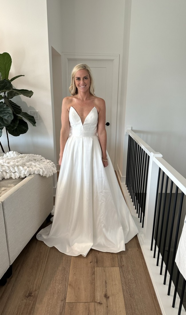 Crafted in a luxurious ivory fabric, this dress embodies timeless beauty while providing a fresh and modern twist. One of its standout features is the cleverly designed pockets, offering both practicality and a chic finishing touch. Imagine gliding down the aisle, radiating confidence and sophistication, as you carry an air of whimsy with handy pockets ready for your small essentials.