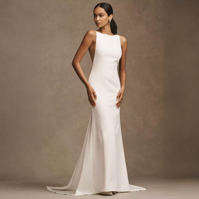 Anthropologie Weddings (BHLDN) Watters Hyde Bateau-Neck Low-Back Trumpet Wedding Gown