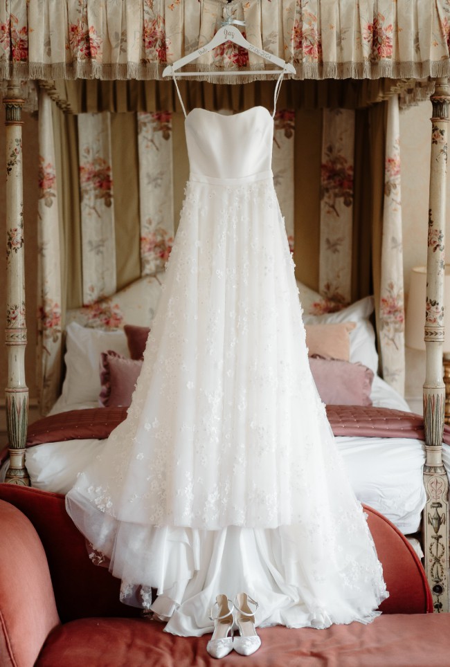 *Price Reduced* The most beautiful bespoke Gigi/Elliana Suzanne Neville dress from Anna Bridal. Really unique with the plain bodice and all the detail (flowers and embroidery) on the skirt. It was my absolute dream dress and so stunning to wear and in the photos. Corseted on the inside of the bodice. Paid £4910 for it January 2024, worn June 2024 and just back from being professionally cleaned. Unsure on the size but have measured various parts of the dress - it can also be let back out to its original size according to my seamstress. I'm usually a UK 8/10, 34A, approx 5ft7/8. Open to offers.