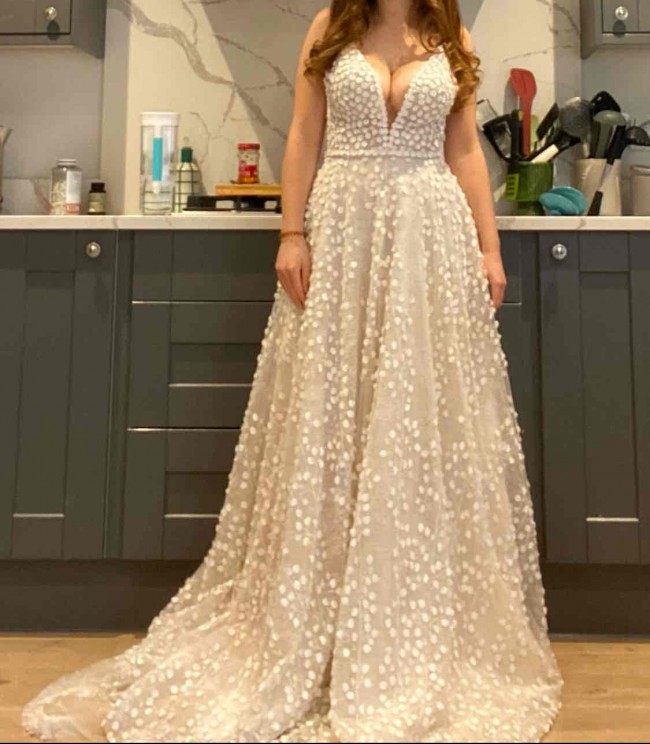I bought this dress through a sample sale from MWL so it has only ever been tried on - never worn for a wedding day. It’s a beautiful dress but unfortunately does not suit me like I hoped!