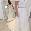 This enchanting J'adore wedding dress is the epitome of romance and elegance, designed for the bride who dreams of a fairytale moment on her special day. The A-line silhouette gracefully drapes over the body, offering a flattering fit that accentuates the waist while flowing beautifully into a floor-length skirt. Crafted from sumptuous ivory tulle, this gown exudes ethereal charm, making it perfect for both intimate ceremonies and grand celebrations.