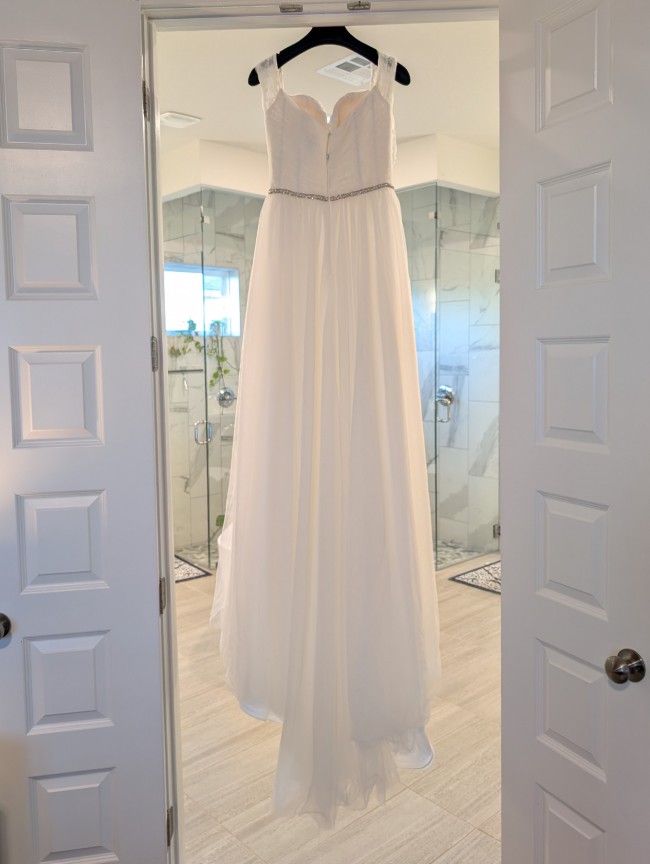 The sweetheart neckline adds a touch of timeless allure, ensuring that every glance in your direction captures the essence of your love story. With its strapless design, this dress allows for ease of movement and stunning visibility, allowing your radiant beauty to shine through. The mid-back detail lends an air of sophistication, while the layered tulle creates a delicate texture that enhances the overall enchantment.