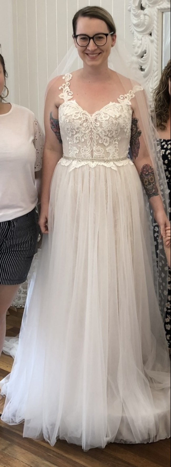 Beautiful dress that was never worn due to being a covid bride and when we had our big day I was 6 months pregnant meaning I didn’t fit into this dress.