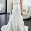 Structured straight neckline with low square back and pleated straps