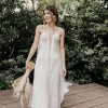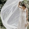 Vestido bohemio con flecos, color marfil con escote pronunciado en forma de corazón de Marcela Quiceno. Tiene un solo uso, incluye capa (velo) de 3 metros.