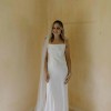 Handmade in London, this is a beautiful silk satin dress with a flattering silhouette and stunning cowl neckline and plunging back. The tapered straps also have micro pleating which gives the dress an elegant finish. Very effortlessly glam dress! Bought for £2,650 (AUD $5,200). I can provide all of the measurements of the dress if needed. I am a size 8 top, size 10 bottom. I am 5”10 and wore small heels in the day. Worn once and extensively dry cleaned afterwards. No major marks or flaws. Website description: The epitome of understated glamour, this stunning silk wedding gown impresses from every angle. A dramatic open back is finished with a cowl scoop at the small of the back, while the bias cut flatters the figure. The tapered straps feature delicate micro pleats and the neckline is finished with a soft feminine cowl drawing the eyes to the décolletage. An effortlessly glamorous wedding gown.