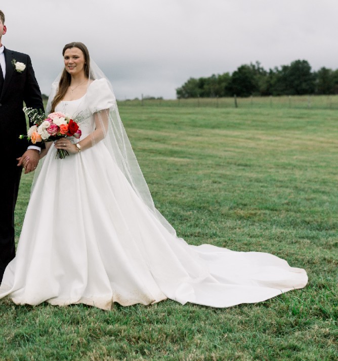 The dress is a size 10 but I am a size 4 in US sizes. I hope to pass this treasure on to another bride who will cherish it as much as I did. It’s not just a dress; it’s a memory in the making. Let the Bronte dress be the canvas for your love story.