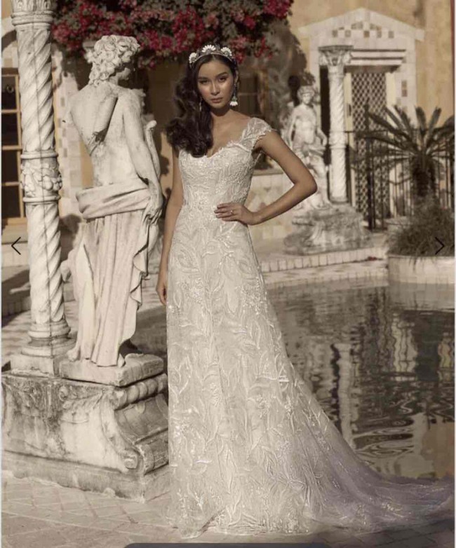 This Brinley wedding dress by Madi Lane is the epitome of romantic elegance, perfect for a bride who desires a touch of dreamy sophistication on her special day. The stunning A-Line silhouette gently flatters your figure, allowing for effortless movement and a graceful silhouette as you glide down the aisle. In a timeless floor-length design, this gown beautifully combines traditional charm with contemporary allure.