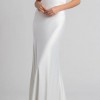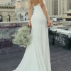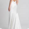 The Marnie V-neck satin bridal gown brings old Hollywood glamour into the 21st century in an effortlessly chic way. The V neck tapers up to a delicate spaghetti strap to highlight your shoulders and collarbone. The low scoop back has a barely there feeling, and the bias cut skirt slinks over every curve. The back flounce seam gives way to a dramatic court length train.