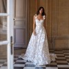 This stunning A-line wedding gown was an absolute dream to wear and made my special day even more magical. The dress features exquisite floral lace appliqué, creating a romantic and timeless look. Its nude lining, enhanced with a subtle sparkle, adds just the right amount of shimmer without being overpowering.