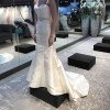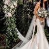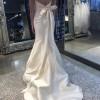 This stunning Mia Solano wedding dress (Palmer) In its elegant champagne satin, creates a stunning mermaid silhouette. The sweetheart neckline beautifully frames the décolletage, while the strapless design allows for a classic and timeless look.