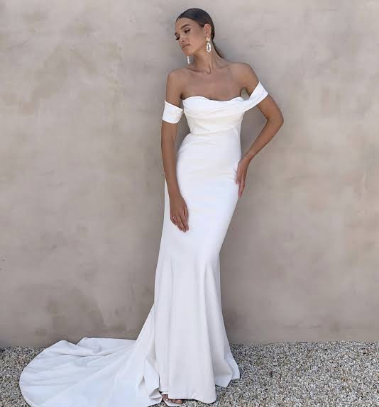 Off the shoulder with 2 sleeves (these can be made detachable/removable in alterations).