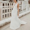 This minimally chic gown us the perfect canvas to play around with your veil and accessories. Simple design also allows for easy alterations!