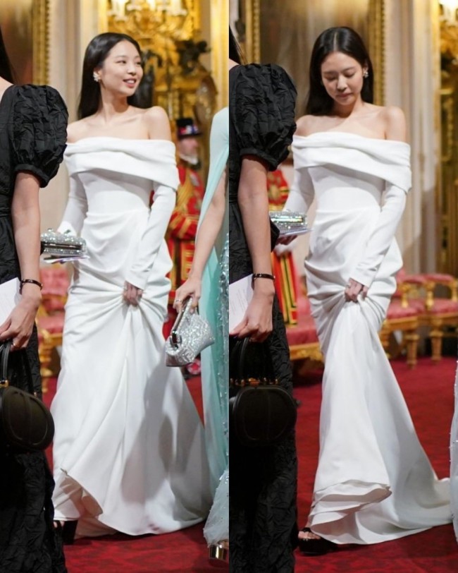 Same dress worn by Jennie Ruby Jane from Black Pink for the South Korea-UK State Banquet at Buckingham Palace.