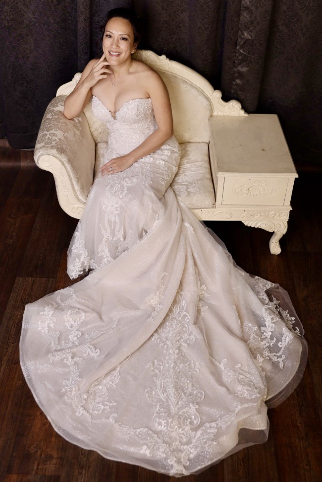 Worn only once, this dress is in excellent condition and has been professionally cleaned. It's the perfect choice for a bride who wants to stand out while still embracing classic beauty. I hope to pass on this gorgeous gown to someone who will cherish it as much as I did. If you're looking for a dress that combines timeless elegance with modern charm, this is the one for you.