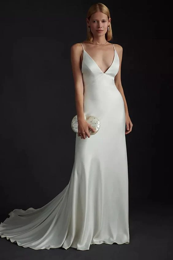 Luxe satin Jenny Yoo Marnie gown in size 0. This gown has a luxurious feel and weight. Straps have been shortened and a bustle added. Worn for approximately 4 hours, perfectly dry cleaned and ready for your big day! There are virtually no signs of wear less slightly on the train.