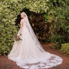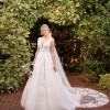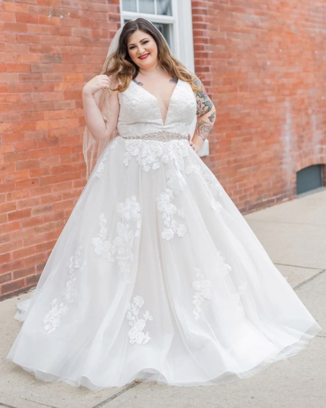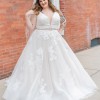 Fall in love with Style D3121, a stunning ballgown featuring delicate lace florals that gracefully hug the curves along the bodice and cascades into a full, voluminous skirt. The organic-inspired design exudes elegance, while the blooms that increase in size add texture and dimension. The plunging V-neckline and V-back create a sensual and sophisticated feel, complemented by V-side cutouts for added allure. The frothy train is adorned with horsehair trim, maintaining its airy shape as you walk down the aisle. This dress is the perfect match for your romantic love story.