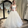 The sweetheart neckline adds a touch of allure, beautifully framing the décolletage, while the strapless design allows for graceful movement. The low back creates an enchanting look as you glide down the aisle, leaving a lasting impression on your guests. Floor-length in design, it cascades beautifully, making you feel like the princess you’ve always envisioned.