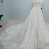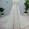 Look gorgeous in this shimmery A-line wedding gown.