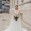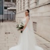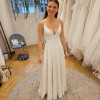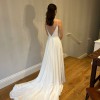 Simple and elegant A-line silhouette with pockets, full skirt and train, purchased in 2024 at Evelie Maida Vale. Only adjustments made were to length and to add bustle. The dress has been professionally dry cleaned. There are signs of wear on the very edge and inside of the bottom hemline, which would be removed if alterations were made to make the dress shorter. Happy to send additional pictures on request.