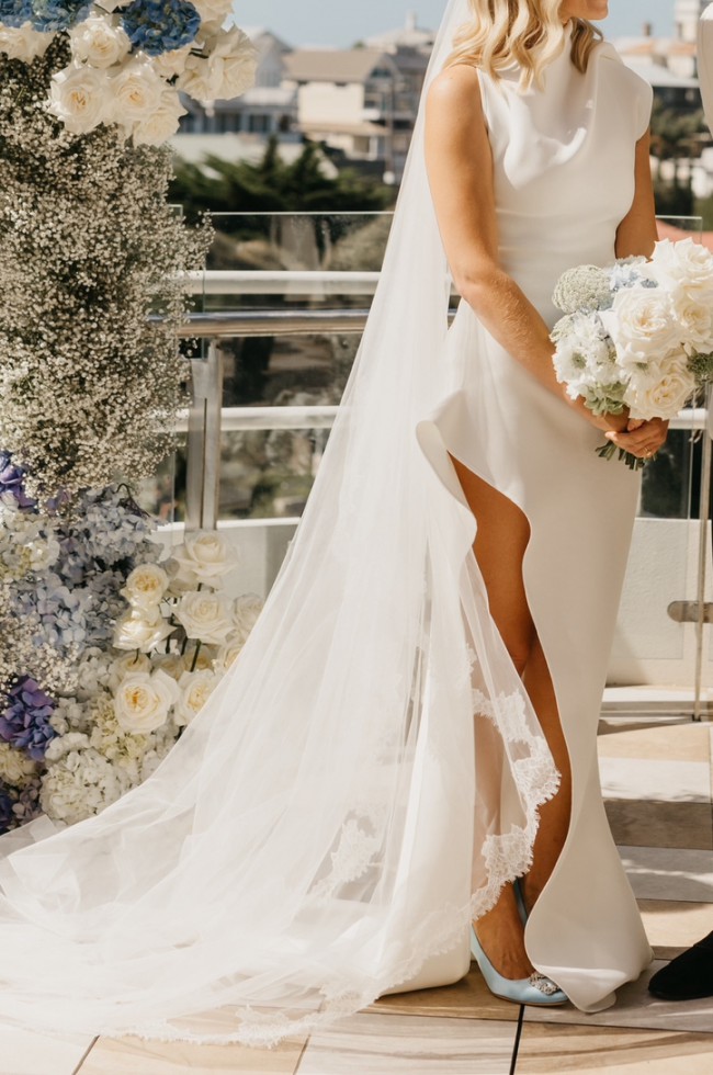 My wedding dress, worn once and dry cleaned. Stored covered since.