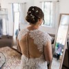 Hard to see in photos, but there is a chapel length train. I added a bustle to pin it up for the reception.