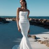 This Lucia gown is ideal for a modern, minimalist bride who wants a sleek and sophisticated look. It’s perfect for framing your figure and making a statement on your special day.