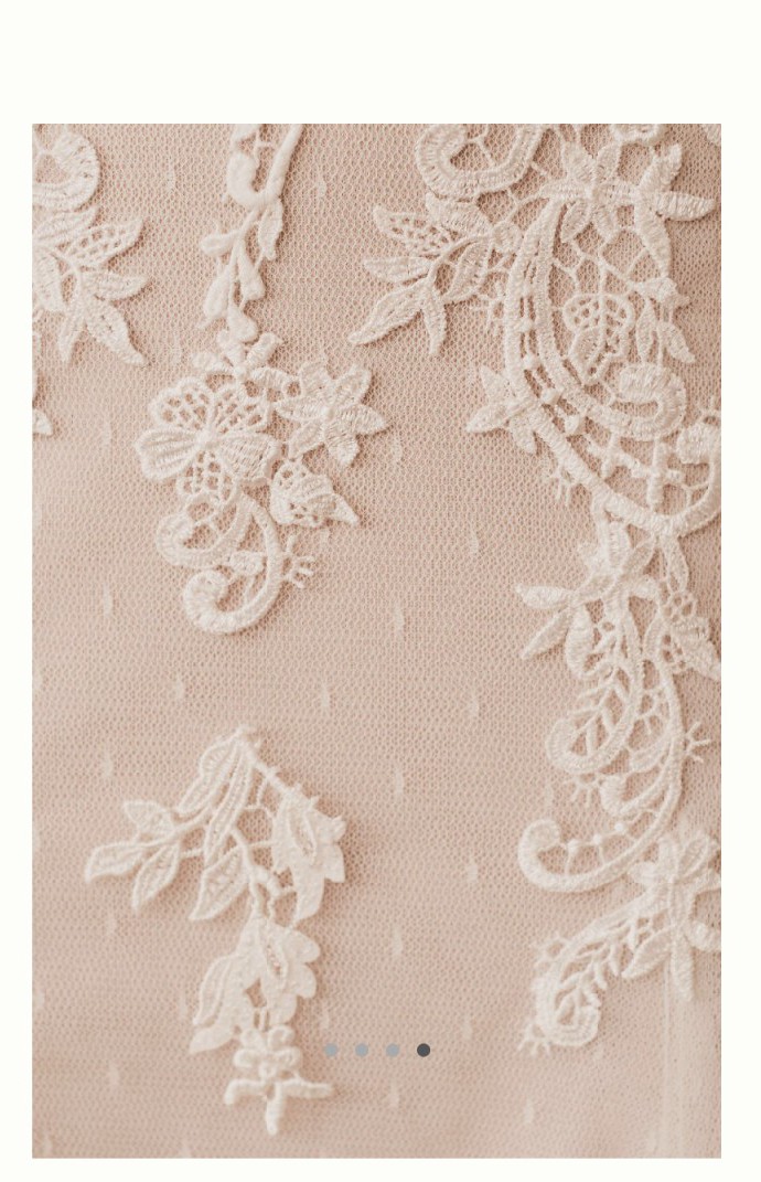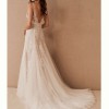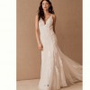 Elegant swirls of lace embroidery coat the bodice of this fitted silhouette, drifting into a light-as-air skirt. A sweeping train and an empire waist to add a touch of bohemian beauty, while a plunging neckline and open back add to the ethereal aesthetic.