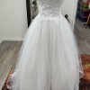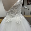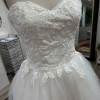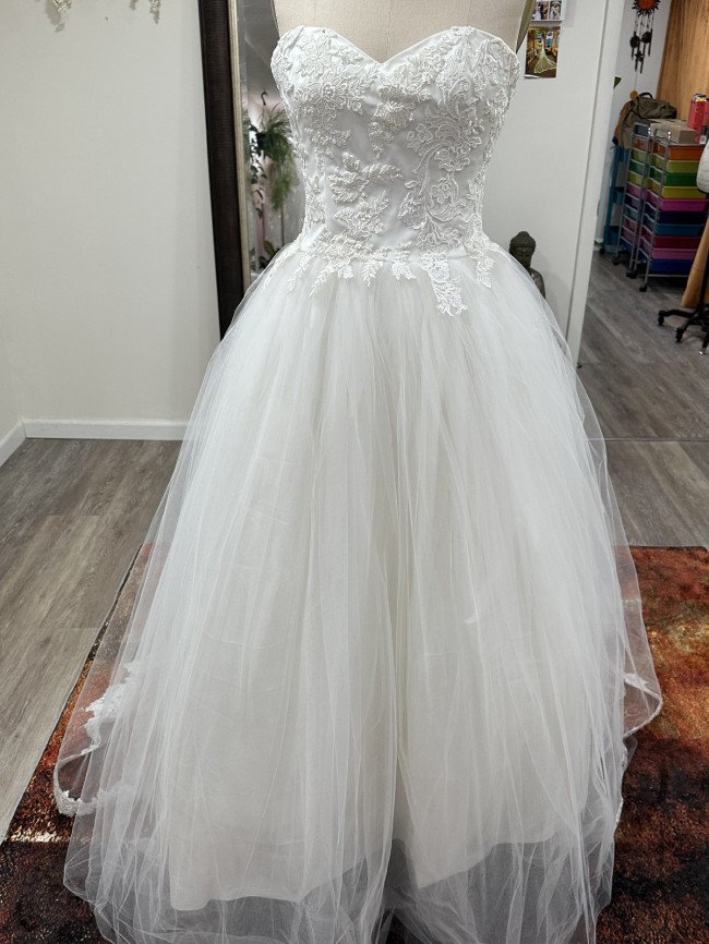 Designed for a size 8, this dress embraces the beauty of your natural shape while providing comfort for all-day wear. The exquisite lace detail offers a timeless elegance that will be cherished in photographs for years to come. Celebrate your love story in this breathtaking gown, making your special day as magical as the romance it represents.