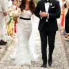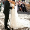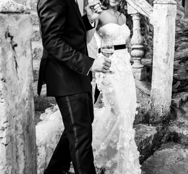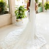 The dress is a fit and flare strapless gown in trickling 3D feather and flower embroidery with Chantilly lace underlay. The dress itself has a total of 5 layers which makes it multi-dimensional and includes intricate beading and sequins making it glisten in the light.