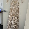 Beautiful, unique wedding dress! Worn once on my wedding day but it was outside so bottom hem area is a little dirty. Not at all noticeable once on though given the lace on the train!