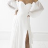 "Eve by Love Story London embodies romance to the fullest. WIth her subtle sweetheart neckline, soft draped off-the-shoulder sleeves and floaty skirt, Eve is a favourite for brides looking for a timeless wedding dress that is both feminine and chic."