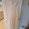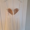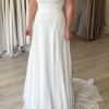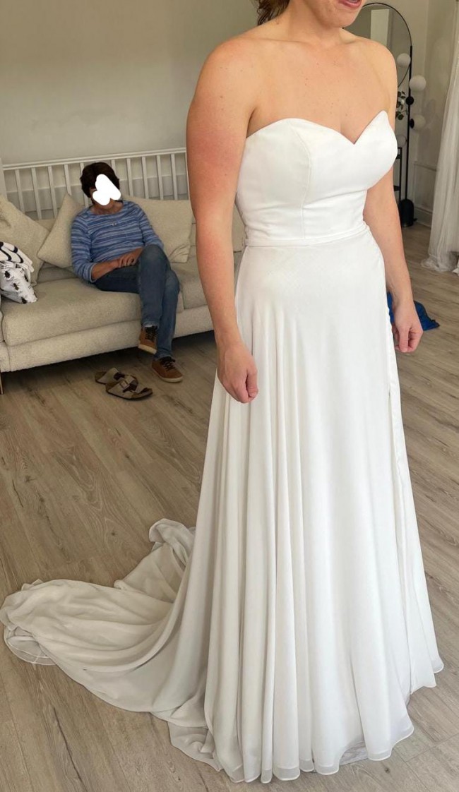 This is the Eve dress by Love Story London, made to order WITHOUT the split seen in the catalogue photo. The dress is unworn and I've not tried it on since collection. The photo of me is from when I was trying on the size 12 at the Perfect Day Bride shop. The dress here has never been worn. The dress was ordered in a size 12 and has not been fitted to me.