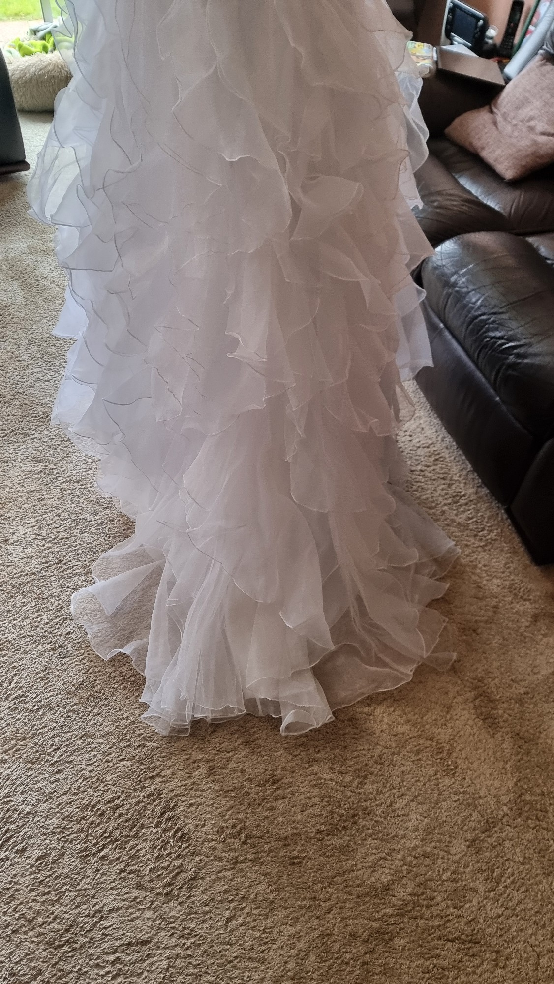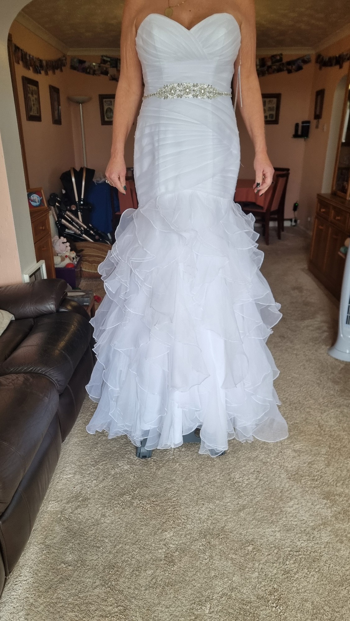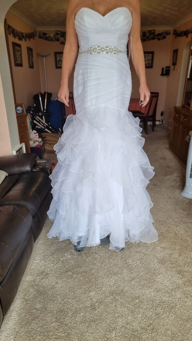 We have a beautiful Davids Bridal Organza Mermaid Wedding Dress with Lace-Up Back for someone on their special day.