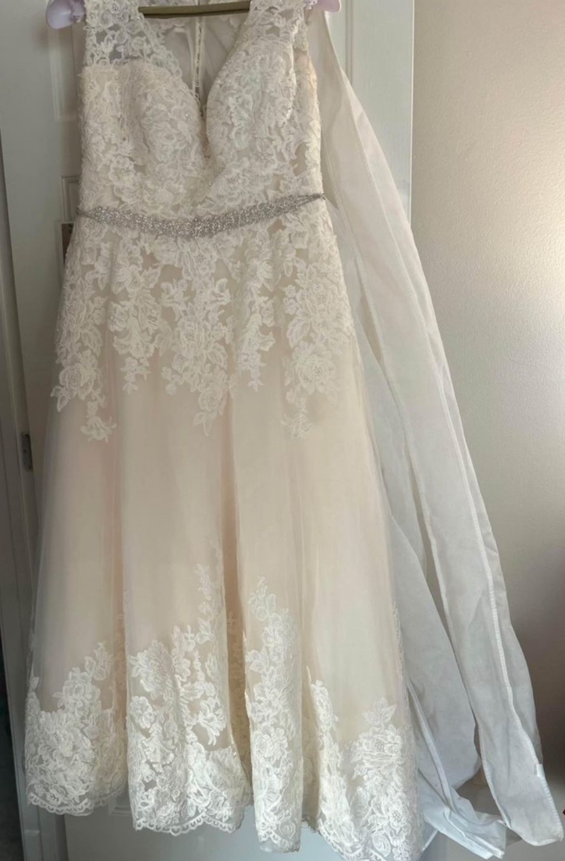 Included with this dress is a delicate veil, completing the ensemble and enhancing its magical charm. I hope this dress brings you as much joy and wonderful memories as it did for me on my unforgettable day.