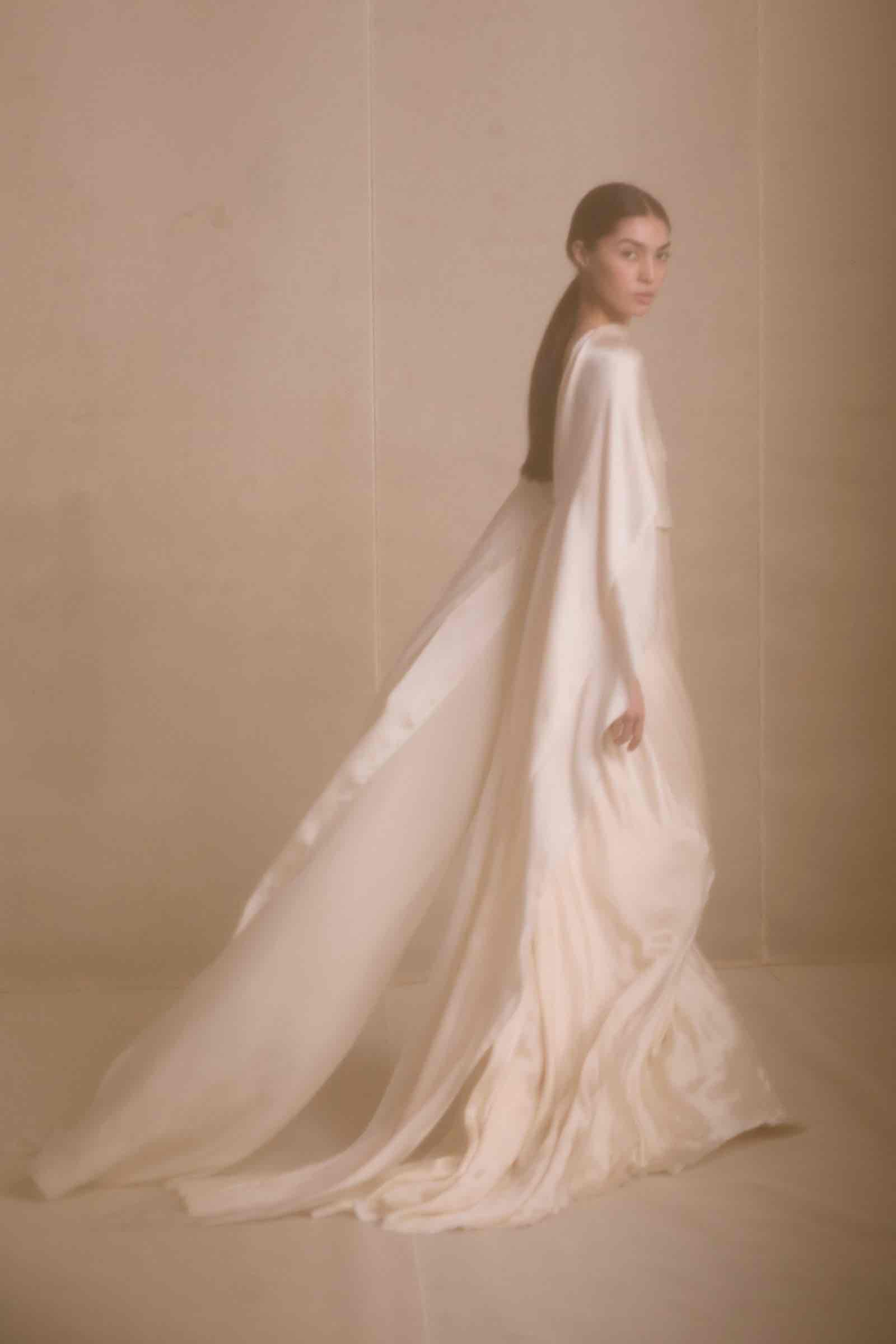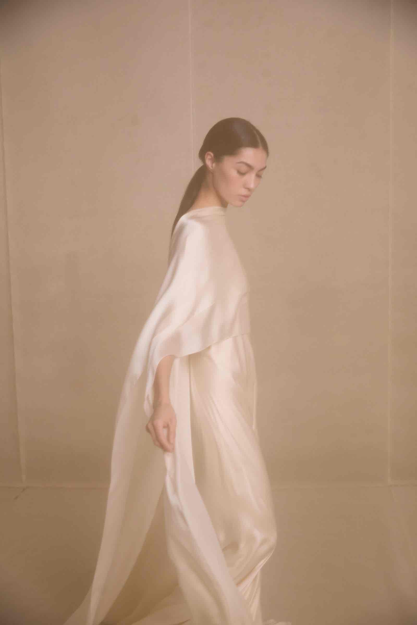 Brand new Lirio! “Lirio dress, part of the Cortana bridal collection, made of silk georgette and cut on the bias. The Lirio dress has three layers of fabric, a wide V-shaped neckline at the back and two very long stoles attached to the neckline to be worn in different ways. Although this dress has a plunging neckline, it can also be worn backwards, with the neckline facing the front.” Lirio is a masterpiece. The dress is made of a beautiful champagne silk wool and can be styled in a number of different ways. It’s perfect for someone looking for an ethereal, timeless ensemble for your wedding or welcome event. I ended up going with another dress for various reasons and unfortunately will have to part ways with my Lirio. She’s brand new, unaltered, incredibly comfortable, and a great option if you’re eyeing this dress but don’t have enough lead time and/or are hoping to avoid paying a rush fee (for reference, I ordered in August and the dress arrived mid-February). The sizing is very flexible given the loose fit. Happy to share my receipt to verify the purchase/delivery date as well as cost. Depending on when the dress is needed, it can be shipped locally from Germany, the Netherlands, or the US.