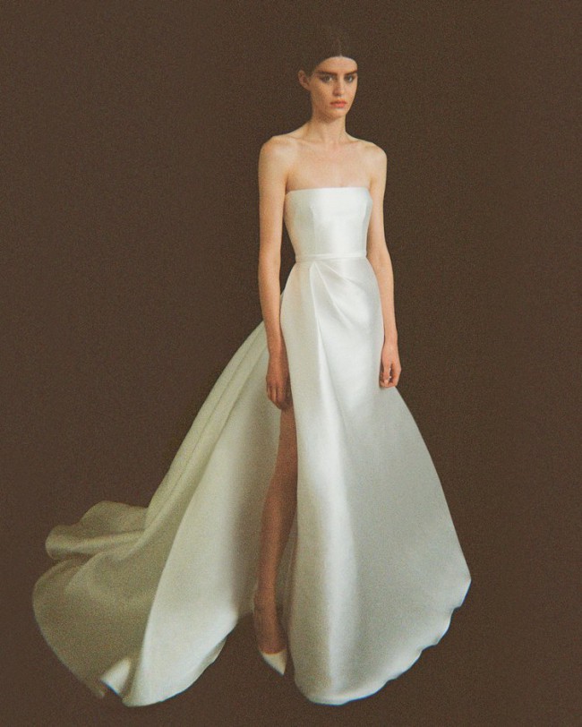 The Abigail is constructed from a light weight silk faille. Maintaining structure through internal corsetry, this gown features a side split, a zipper back with additional button detailing, and side pockets in the a-line skirt.