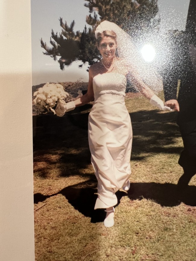 Has a beautiful removable bustle. Great condition. No stains or tears. I had it boxed by a professional.